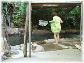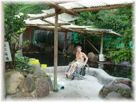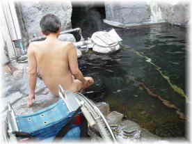 すんません、露天風呂に入らしてください。「よう来たな、どこからきんしゃったん、あれあれ車いすかえ」