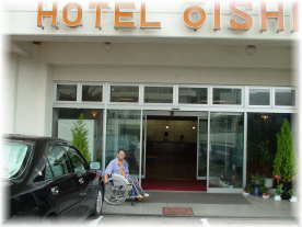 「こっちからは行けるかの、ダメダメこっちがいいちゃ、やっぱホテルの入り口の方がいいじゃろ」
