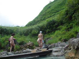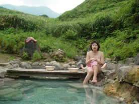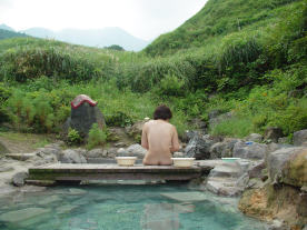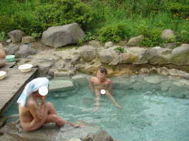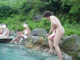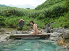 お湯の温度は42℃ほどだった。熱いヘ(;゚゚)ノ、するとお湯に浸かっていた美人さんが