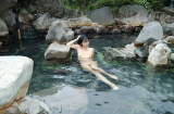 石組みの大きな湯船、温度も40℃熱めだったが問題ないよ♪