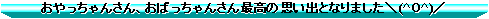 おやっちゃんさん、おばっちゃんさん有り難うございました。