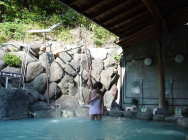 ここ混浴露天風呂は硫黄泉・炭酸泉白濁・無色透明のお湯で