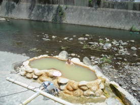 川のせせらぎを聞きながら、ゆったりとしてお湯の温もりを味わいながら時折、橋の上からは