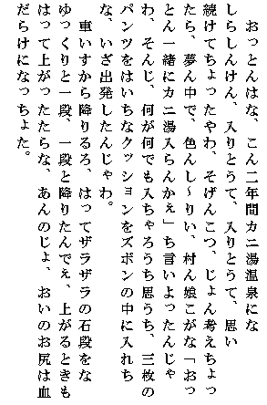 直入町「ガニ湯伝説より」(おっとん・おかん風に)