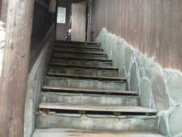 混浴露天風呂は地下と言う事でエレベータで下りると入り口には10cmの段。