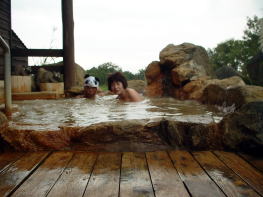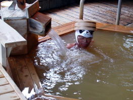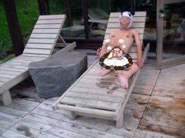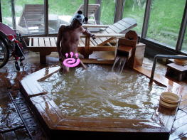 二時間経ったのでお風呂へ従業員三人付き添って案内して貰った。坂の砂利道で大変だったが