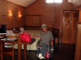 部屋は身障者でも楽チンで泊まれる。冷蔵庫、テレビ、風呂、トイレ、ベット2個、