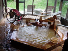 入浴タイムだわ(^o^)内湯は六角形の湯船には五、六人ほど入れるゆったりとしたスペースで洗い場は車イスで移動できる。蒸し湯も付いており、長イスがまたリラックスだわ♪