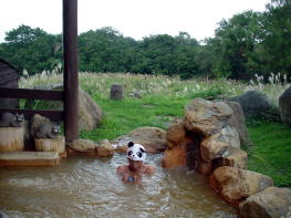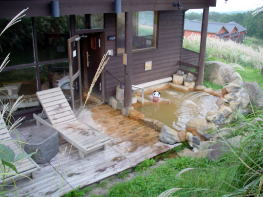 露天風呂もと〜てん広く、回りの景色は秋の風がススキをなびかせ、大自然が「おーーい気持ちええろが」っち言う