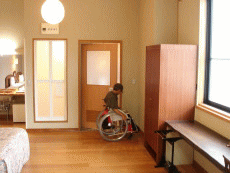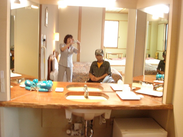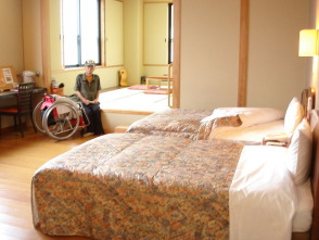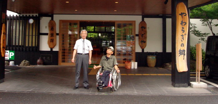 私が「やどや」を訪れたのは03年の5月ホームページでバリアフリー度を掲載しているため訪問したのがきっかけで、総支配人の鈴本さんより気に入られ03年7月30日に一泊することになり、更に05年7月23日に2度目の招待があった。そして08年6月28日に宿泊。今回で三度目の泊まりとなった私は来るたびに改善の成果が手に取るように分かりました。部屋のドアー開閉が引き戸と改善され部屋のトイレのドアーはスペースを取らない折りたたみ式となっていた。室内家族風呂・露天風呂にはリフトが付いている。多目的ホール、岩盤湯、ミニトレーニングなどの設置、朝食は洋食と和食となっていた。まさに生まれ変わるやどやに胸が引き締まる思いでした。
