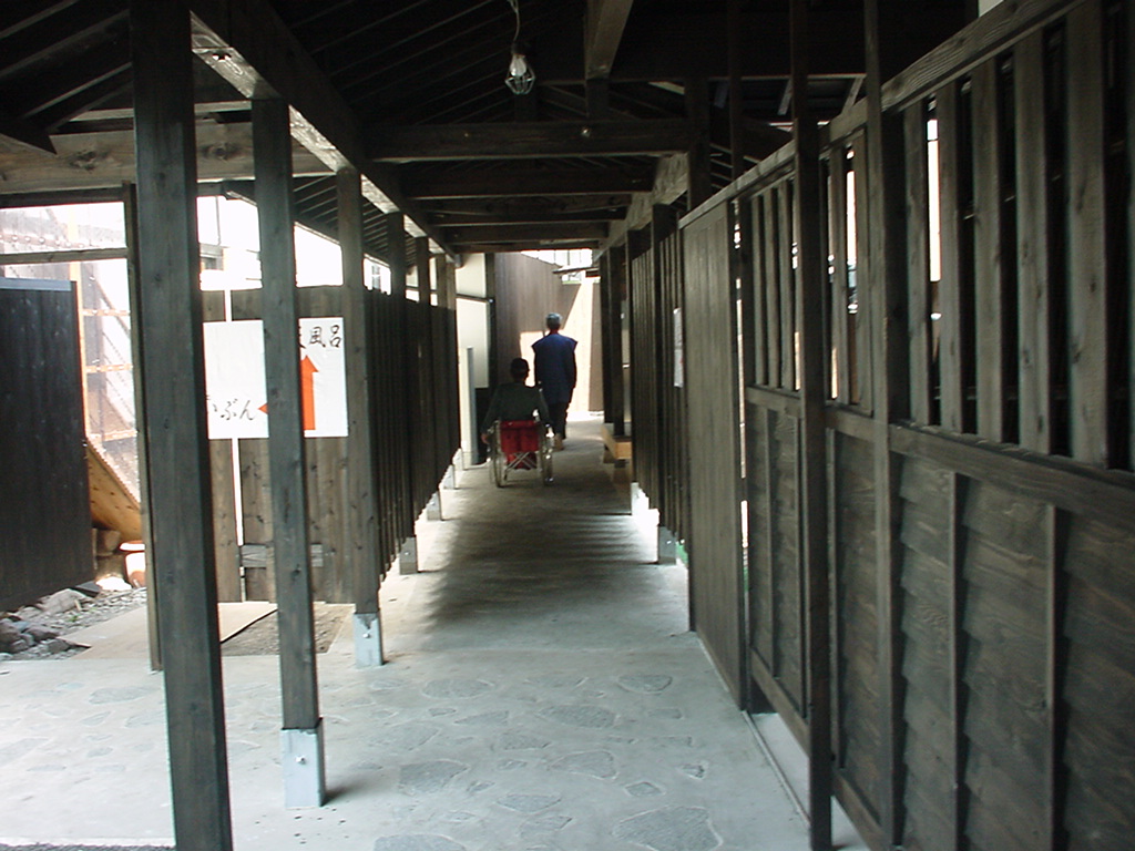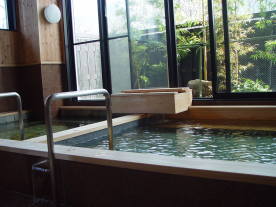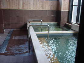 一階に設置している家族風呂、左側の船風呂は同伴で入れる。右側が身障者用のお風呂、そしてお風呂に
