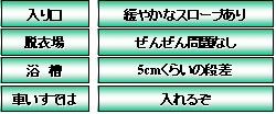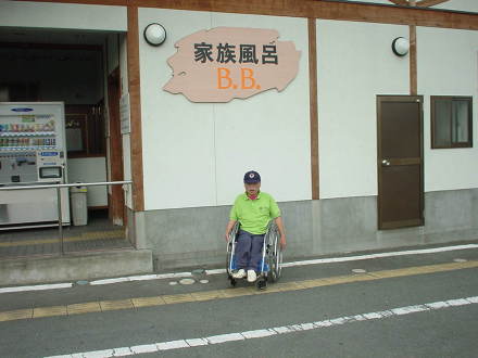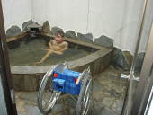 | 別府から約2時間かけて車いすでも行ける熊本の温泉を探してきました。本館と別館に分かれており、 本館では色々と楽しめる風呂が14種類あって、車いすでも自由自在に動けるスペースを取られており一日中温泉を満喫できる所です。 別館の方では主に家族風呂が全10室もあって、その中にはバリアフリー専用の 家族風呂がありました。 入り口から浴槽まで楽に入れるように設計され、トイレ・洗面上・テレビ・冷蔵庫・ エアコン・休憩室などが設置していた。 |