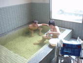 | その日の帰りに別府・湯山高原荘によってきました。 内湯は車いすでも浴槽まで行けるが、露天風呂の方は脱衣場からはって行かなければならない。でも温泉好きなとうゃん、ばっちり入ってきました。湯は真っ白でイオウ泉です。なんか火薬みたいな臭いがしていたが体に良さそうな感じで山の景色を見ながら、のびのびと手足を伸ばして湯を楽しみました。 お問い合わせは 別府湯山1組 温泉民宿湯山高原荘 пF 0977(67)2229 |