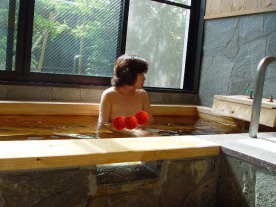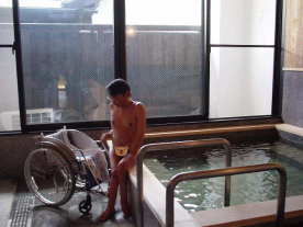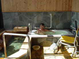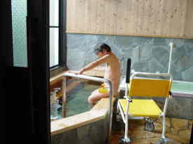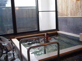次は共同浴場、ここも檜付造りの浴槽でテスリの高さも歩ける方、車いすでも調度良い所に