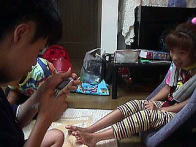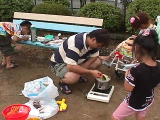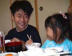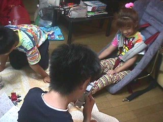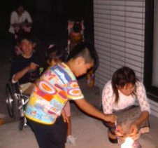 | ご飯のあとは、花火 このときも、たつやくんのギャグは続く みこは釘づけ〜〜 |