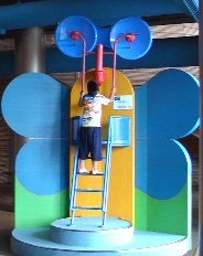 | 外にもいっぱい遊ぶところがあるんだ。 ここはアスレチックのコーナー。 屋根がトランポリンになっているところで 少し走りまわって遊んだ |