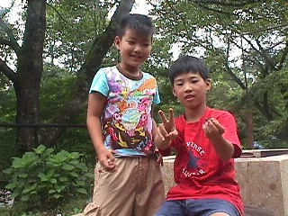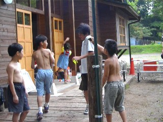 | 子供用に水鉄砲とシャボン玉を持って行った さっそく遊ぶ子供たち〜〜〜 |