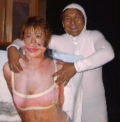| 夜中のあやしい宗教団か? くまんが嬉しそうに白タイツマンになっていた。 昔 競輪していた頃を思い出すなぁ。。 トランクスはピカチュウ ナイスバディは、けいママ〜〜 |