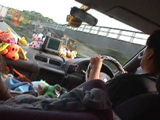 | 7/24 今日は東京、、車が多いぞ〜〜〜 分かれ道だらけで、さっぱり〜〜 くまんは、時々狂ったように「げらげら」笑って いたよ、 「どっちだ、どっちか、わからん〜〜へらへら〜〜 無事につくんかいな。こわいぞ東京 |