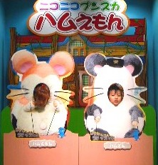 | 次は川崎のzac caさんへ。 ひろちゃんがお出迎え〜〜 私より背の高い人は思わず ぶらさがりたくなるんだよ〜〜〜 店内には、ひろちゃん(帽子かぶってる)と ちっとさん が !!おーハグハグ〜〜! |