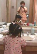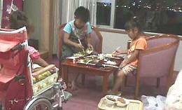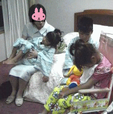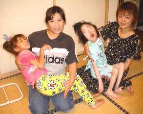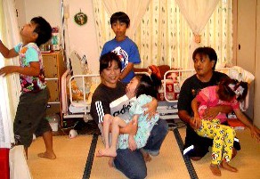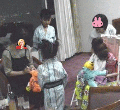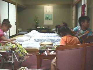 | 社長さんのおかげで泊まることができた 日本平ホテル 5階の特別和室でしたよ〜〜 だー広すぎ!!! 貧乏我が家はいつも隅のほうに固まっています。(笑) |