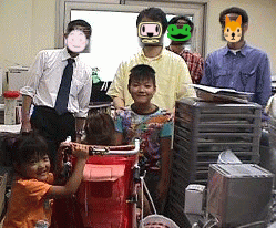 みこの右にいるのが社長さん。 今回、一杯お世話になったんだ〜 細くて若くて、一見「化粧品会社??」というような 感じの人でした〜〜〜 |