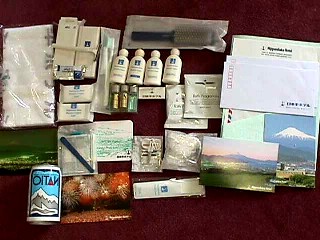 | これが日本平ホテルについていた 洗面道具や便箋&はがきセット 水も4本無料〜〜〜 |