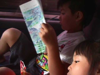 | 車の中で夏の友の宿題中〜 | |