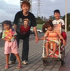 にっこりしているこうへいくんといっしょに みこもたくさんお友達ができたね。 |